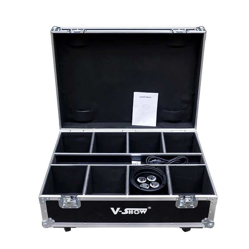 Introducing the VSHOW G420E-Wash 4x20W hybrid battery uplighter spot. Engineered to excel, this IP65-rated uplight features a powerful RGB + Warm White LED source. Ideal for any setting, it offers unmatched flexibility. Illuminate spaces effortlessly with VSHOW’s portable and weather-resistant battery uplight solution.