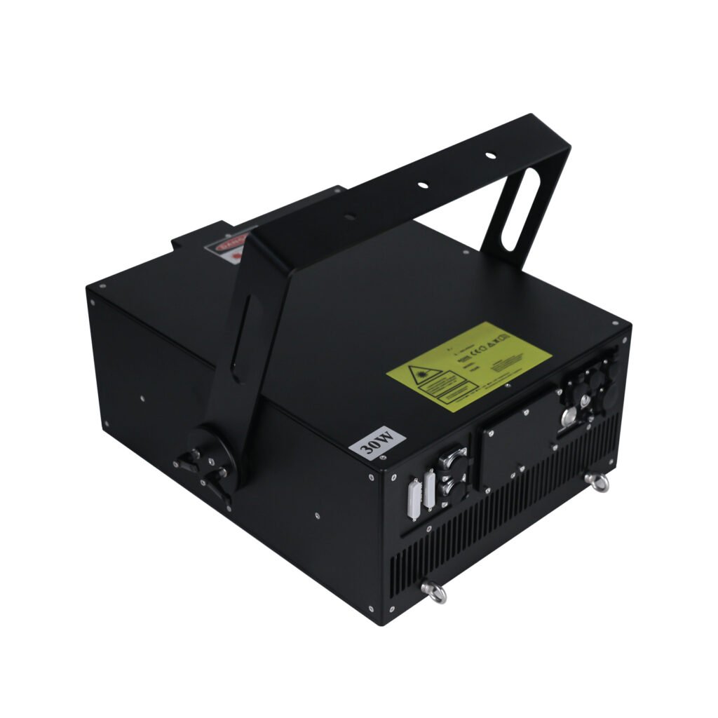 R:8000mw/638nm; (5x6mm ;<1.0 mrad) G:10000mw/525nm; (4×6.5mm ;<1.0 mrad ) B:12000mw/450nm; (3×6.5mm ;<1.0 mrad)