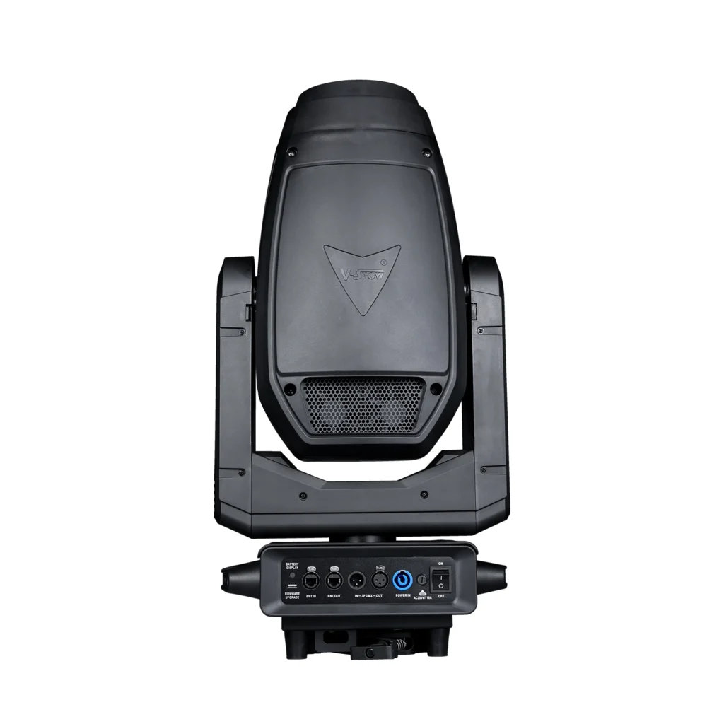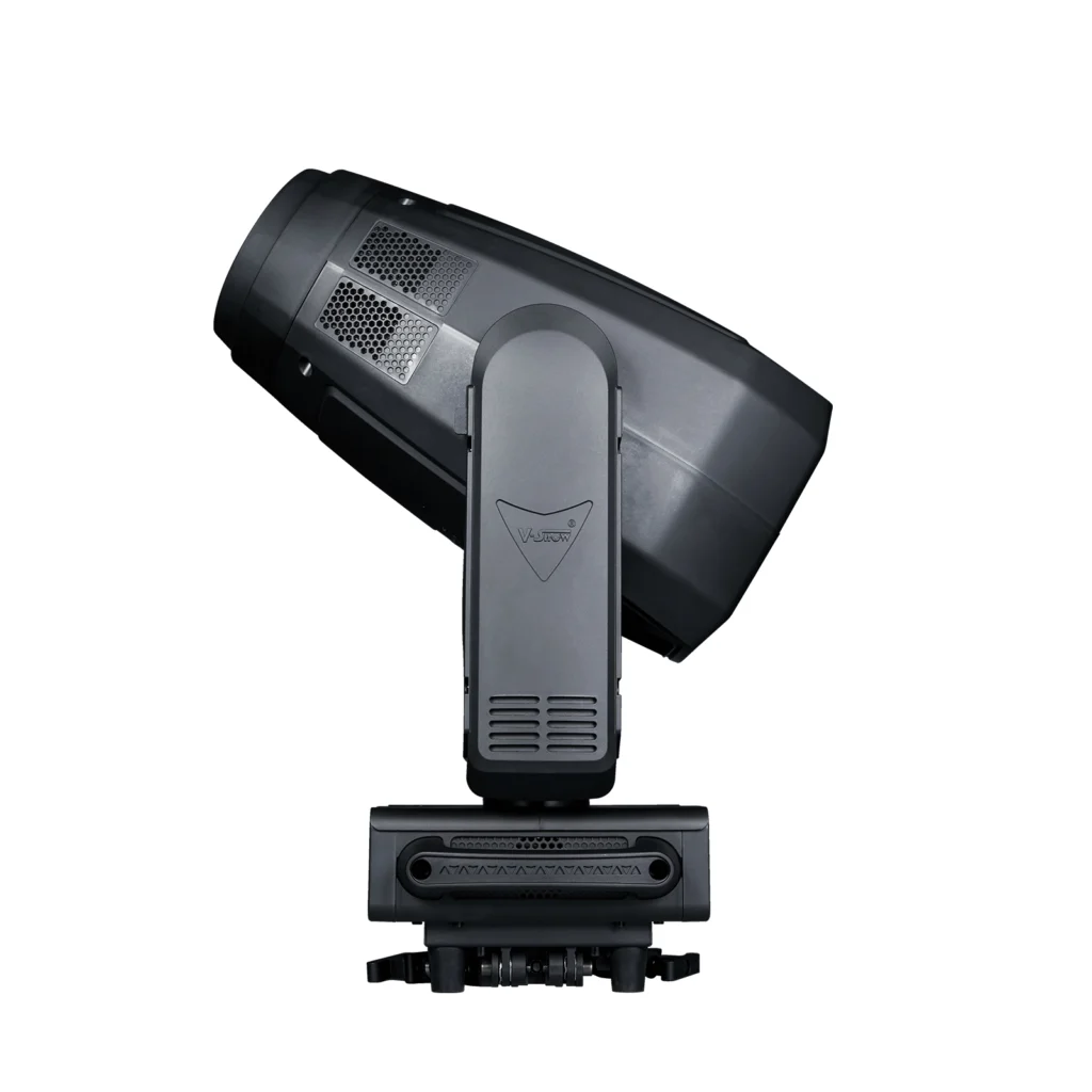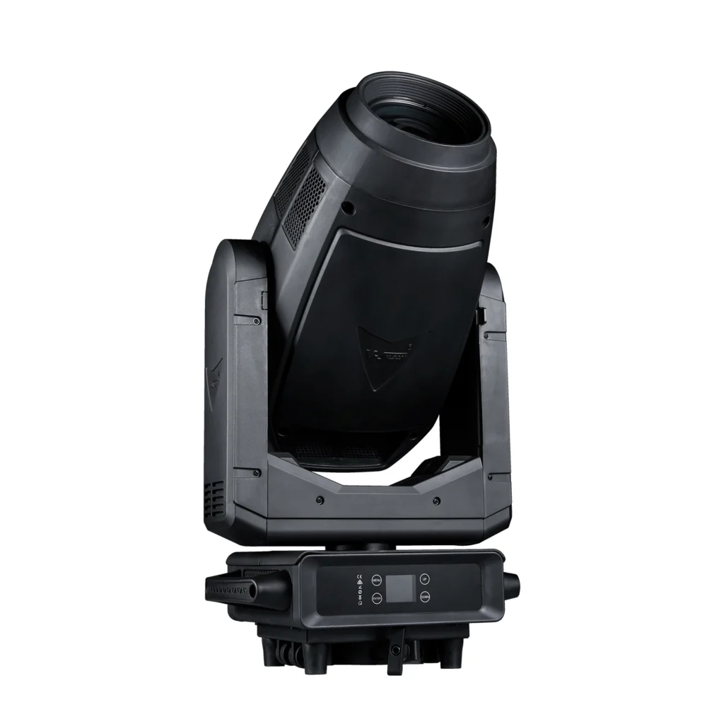 fixture set light beam, spot, wash and cutting functions in one, pure color, uniform spot, color plate, glass gobo plate, CTO, CRI plate are schott materiall, small appearance, light weight, its base is small and delicate, help reduce the weight of the lamp, linear CMY color mixing system, Provides rich color saturation and clear seamless color transitions. LED adopts energy-saving and environment-friendly 800W monochrome LED light engine, which can produce extremely high light output white light, color temperature of 7500K, The 120mm diameter high quality optical lens produces a very uniform spot, CRIRA≥90, and zoom range 3°- 55,The cutting system consists of 4 gratings, which can be rotated ± 60°, giving designers unlimited spot creativity. Two high brightness atomizing pieces of new materials can be respectively inserted and superimposed. With 14° prism, achieve rich prism effect, standard 3-pin XLR or 5-pin XLR socket and RJ45 with fast loading and unloading fast lock light hook, 16BIT dimming, a variety of dimming mode switching options,High refresh rate, no flicker under high-definition camera, intelligent fan temperature control, switching to multi fan mode