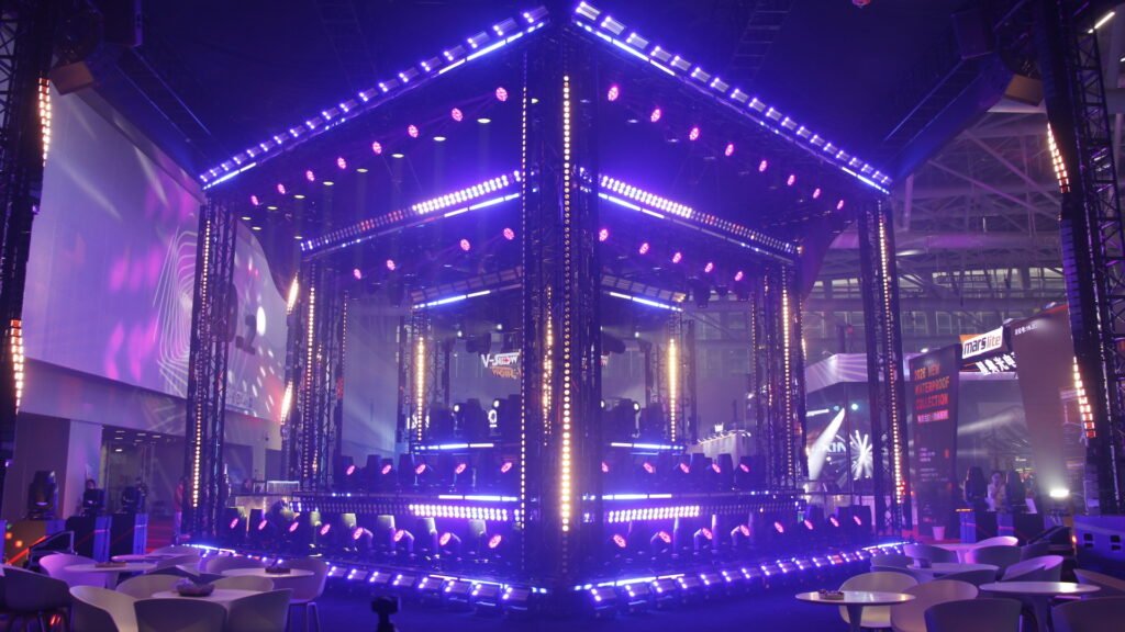 The booth featured a dynamic light show time by time, demonstrating synchronized effects with DMX and art-net control. Technical staff were available throughout the show to answer questions, provide product specifications, and offer customized solutions based on client needs.